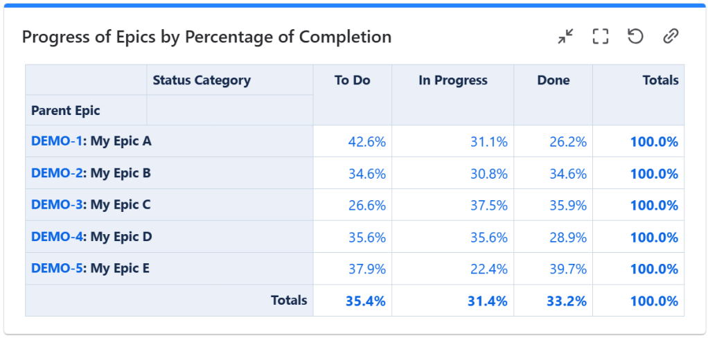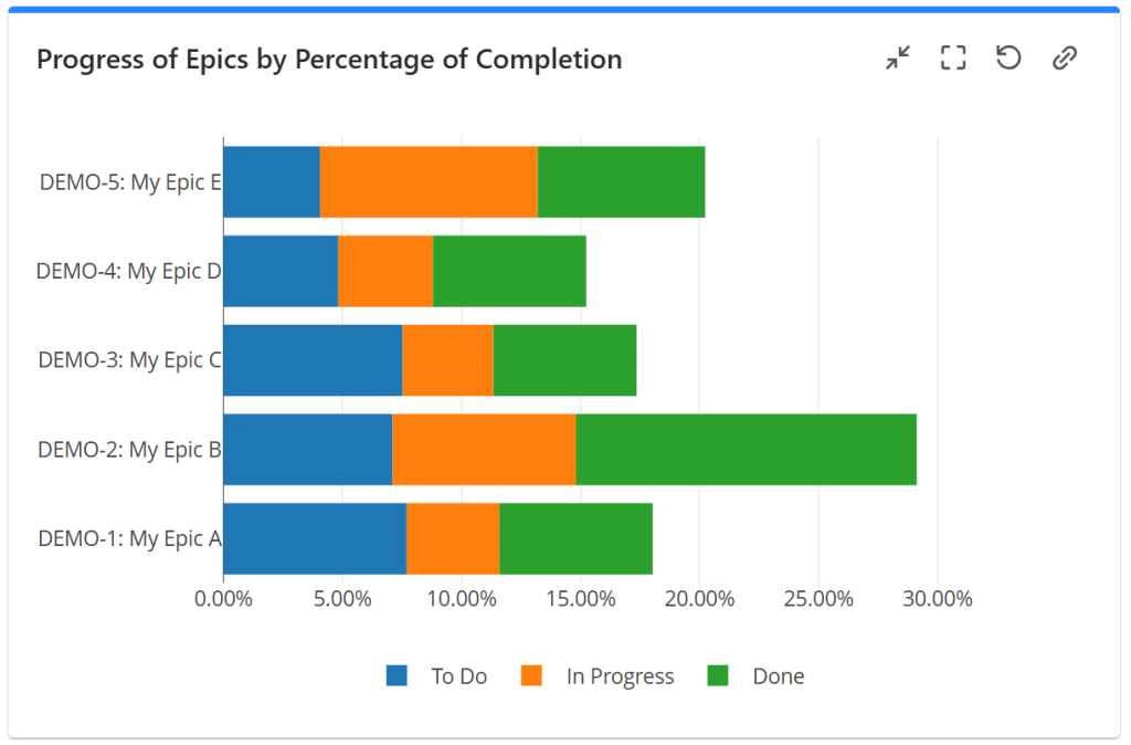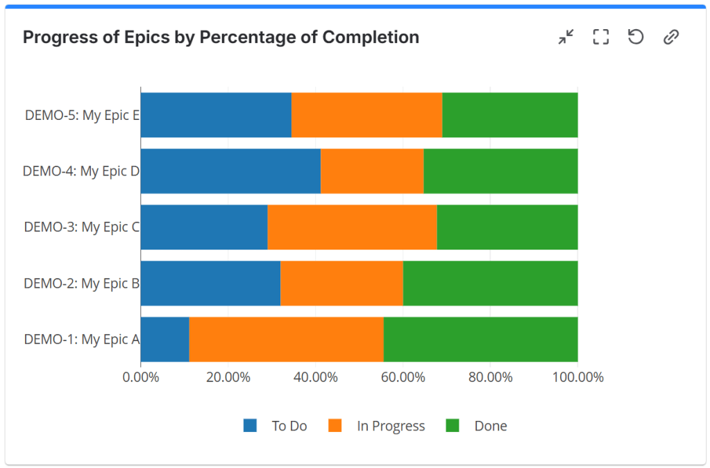 In this example, the progress is calculated as a percentage of Story Points in each Status Category.