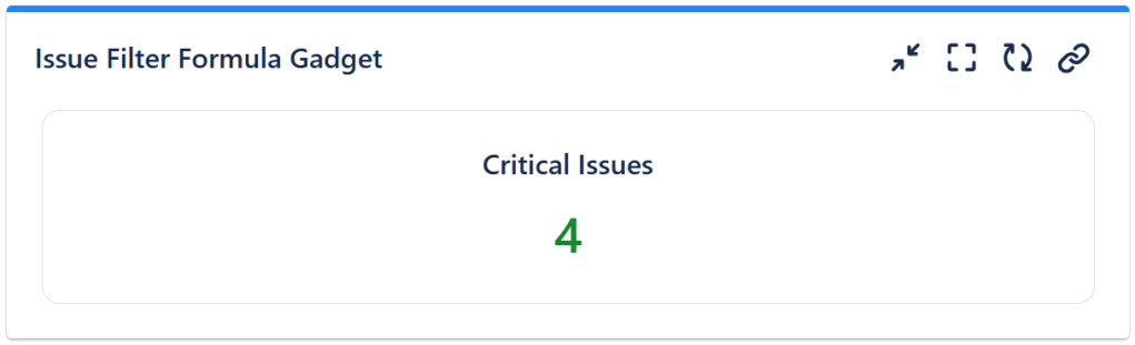 Issue Formula Gadget – shows the result of a math formula (like COUNT, SUM, AVERAGE, MAX, etc) applied against the field of the issues from specified filter. It helps you calculate and display key-numbers like total unresolved critical issues or backlog size.