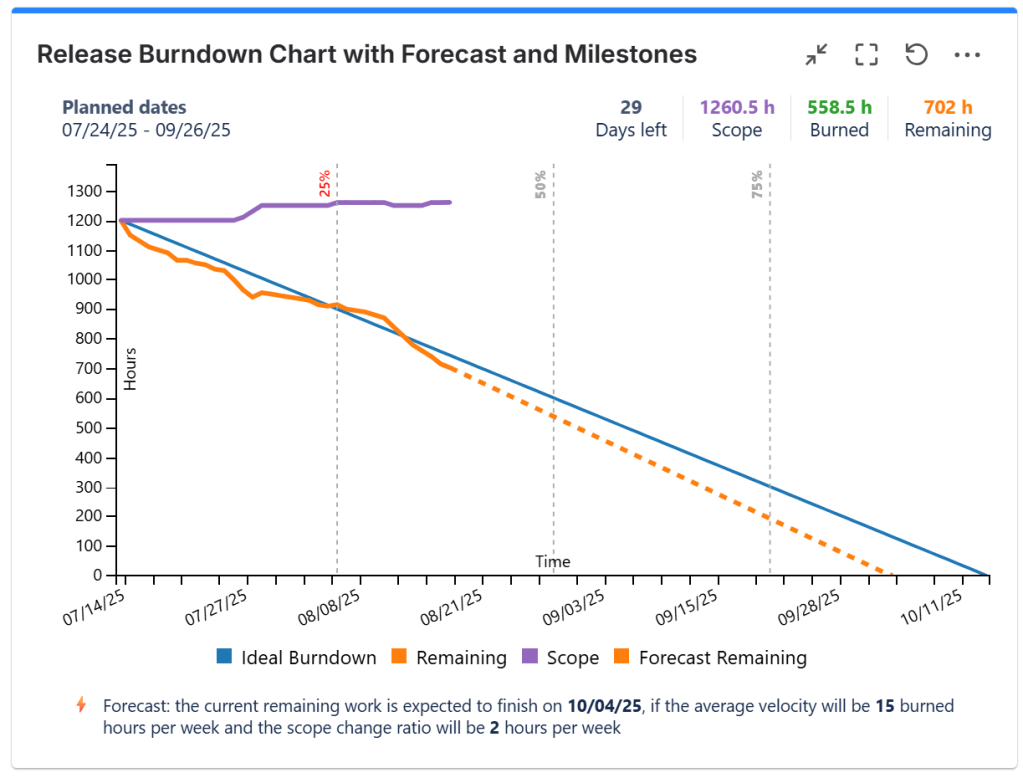 - Optionally, you can choose to display forecast for having a prediction over the ETA of your release.