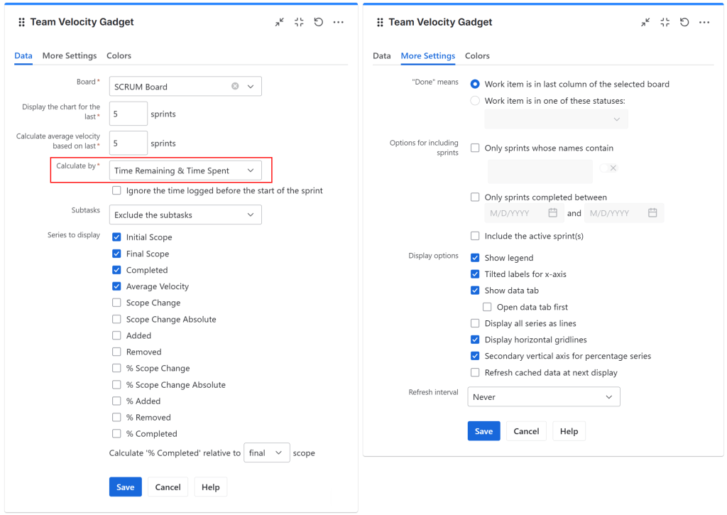 - At Calculate by select Original Time Estimate or Time Remaining & Time Spent, depending on which of the two tracking methods described above you want to use.