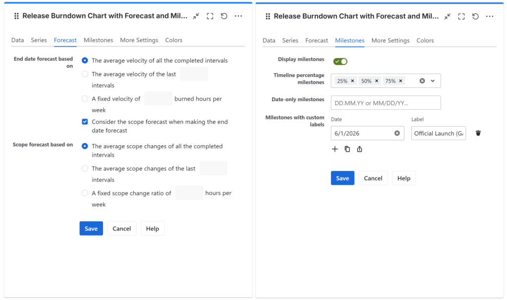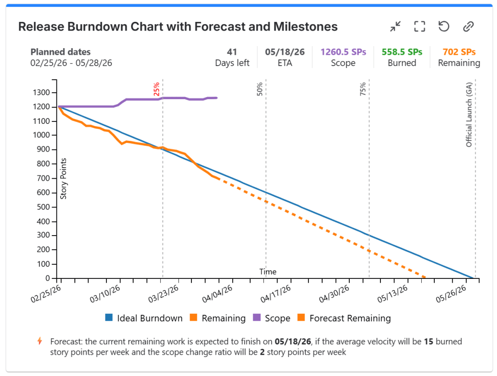 - Optionally, you can choose to display forecast for having a prediction over the ETA of your release.