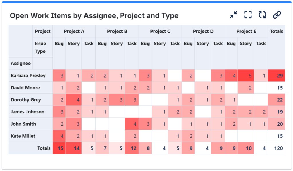 This gadget lets you calculate the total time or the average time, and it can also group the data by different criteria, such as assignee, project, or priority.
