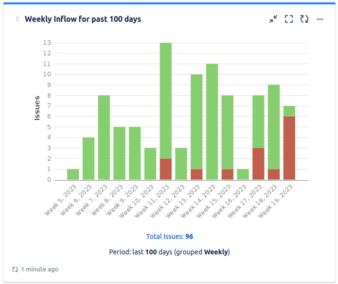 By using the Advanced Issue Filter formula gadget, you can calculate and display your inflow rate, as well as the outflow rate.