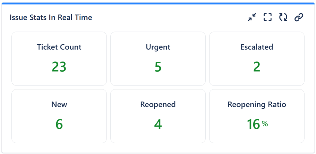 1. Ticket Backlog. How many issues are in the queue? How many are urgent? What percentage of the issues are reopened?