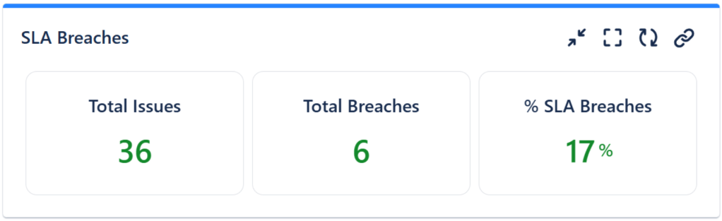 By using the Advanced Issue Filter Formula gadget offered by Great Gadgets app, you can easily calculate and display the count of SLA breaches, as well as the Percentage of SLA Breaches.