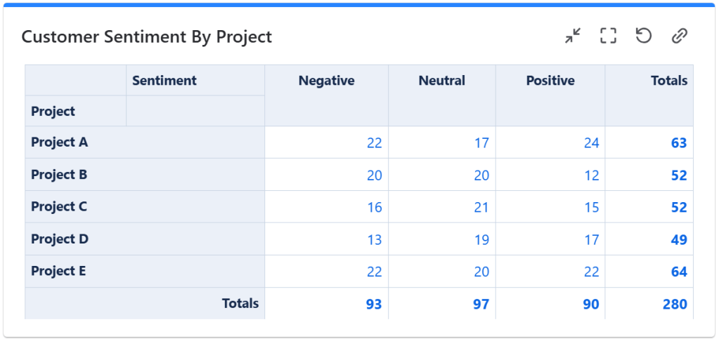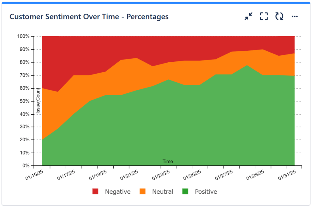 The customer sentiment analysis feature of the JSM projects uses Atlassian Intelligence to determine how customers are feeling based on the content of their request and their recent comments. The sentiment is displayed on an issue as either Positive, Neutral, or Negative. This gives agents valuable insights into how customers are feeling so they can prioritize issues that require immediate attention, ensuring a faster, more positive resolution for frustrated customers.