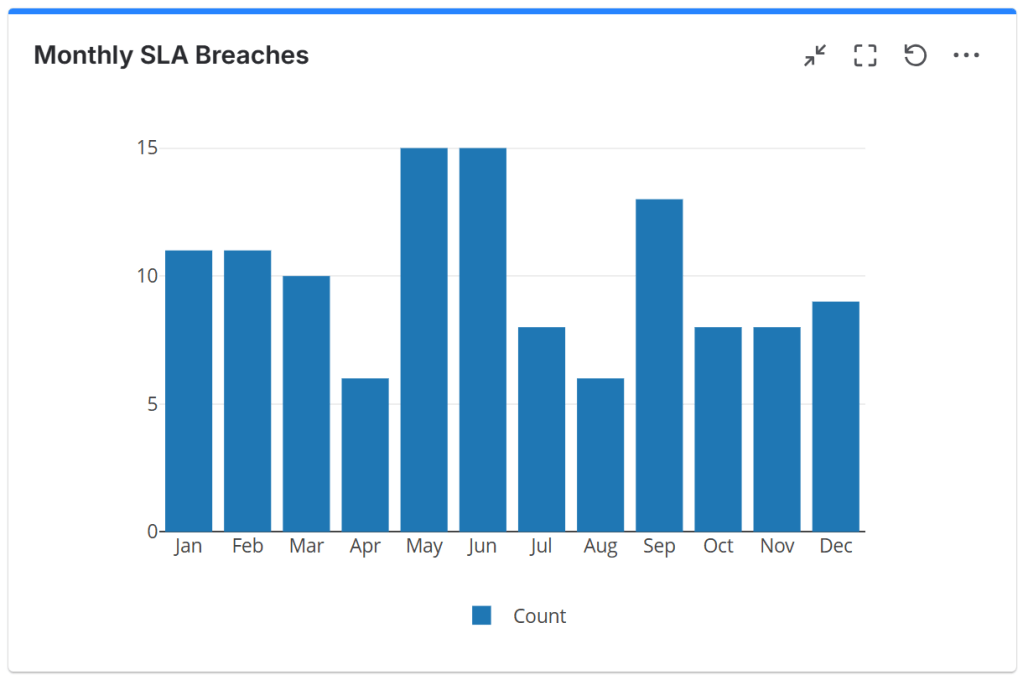 By using the Pivot Table & Pivot Chart gadget offered by Great Gadgets app, you can easily display a chart or table with the number of SLA breaches per month, quarter or year.