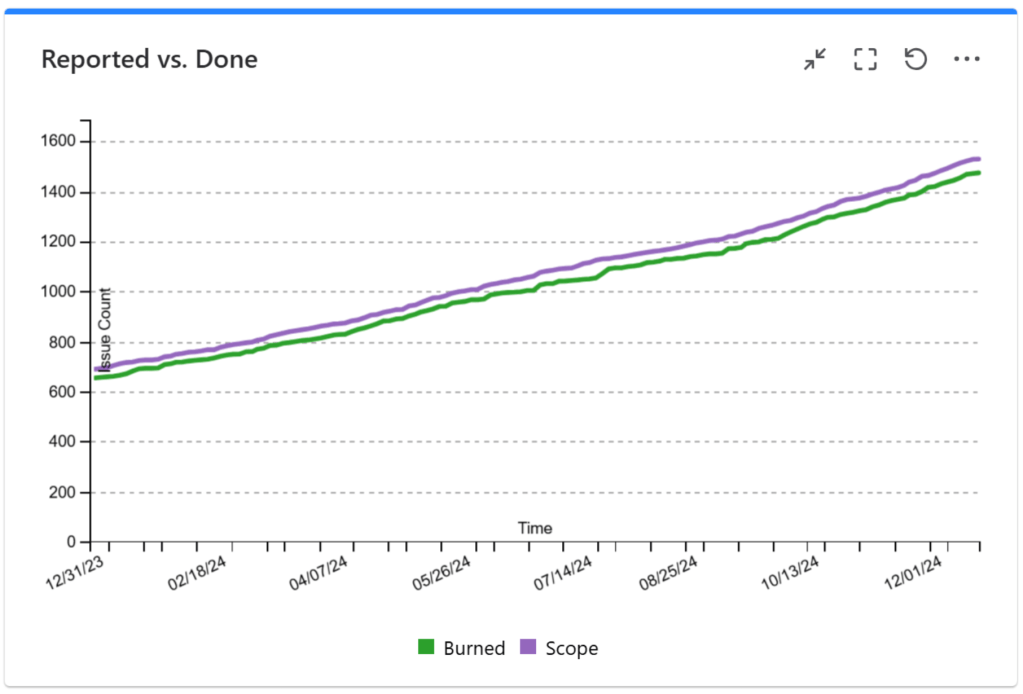 It is highly configurable. If you choose to generate the chart by issue status categories (To Do, In Progress, Done), you will see 3 bands, one for each category. If the “Done” band increases over time and the “To Do” and “In Progress” stay flat over time, this indicates a stable flow.