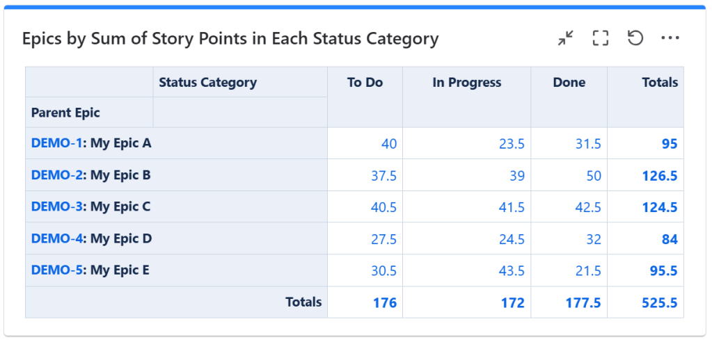 Epics by Sum of Story Points in Each Status or Status Category