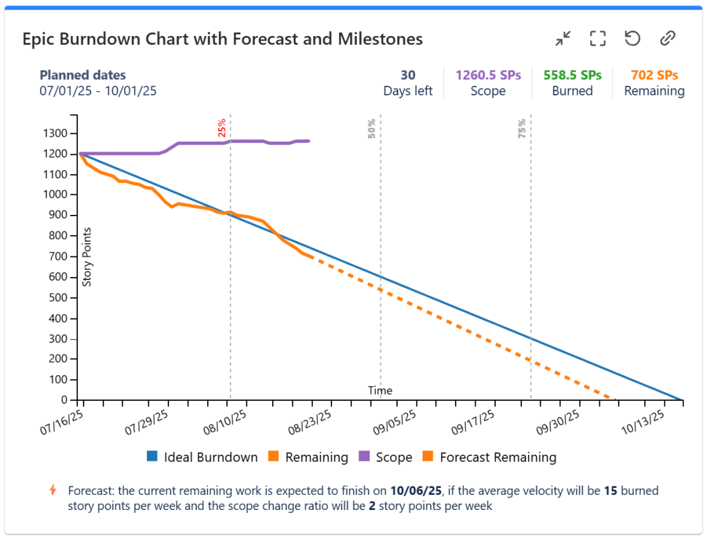 Each Epic contains multiple child issues (stories, tasks, etc.), and it’s important to monitor how these contribute to the Epic’s progress.