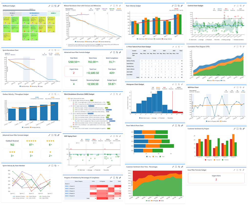 If you want cross-project reporting, multi-team dashboards, custom metrics, stakeholder-friendly visuals — Great Gadgets gives you flexibility, clarity and control.
