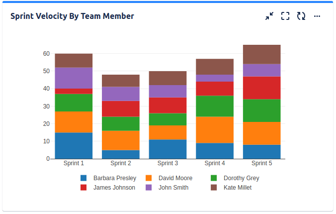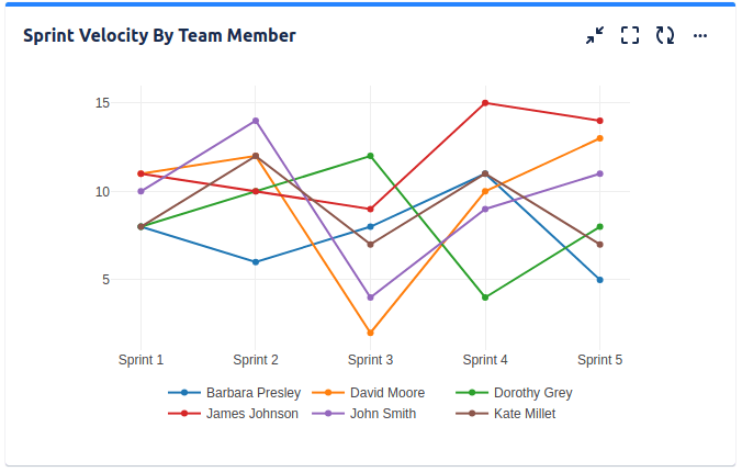 With the Pivot Table & Pivot Chart gadget, you can create customized reports and multi-dimensional statistics that break down story points completed per team member. This will help you see how each team member is progressing through the sprint.