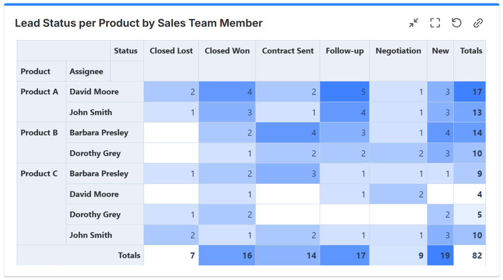 With the Pivot Table & Pivot Chart gadget, you can have a clear view of your team’s workload, understanding where attention is needed most.