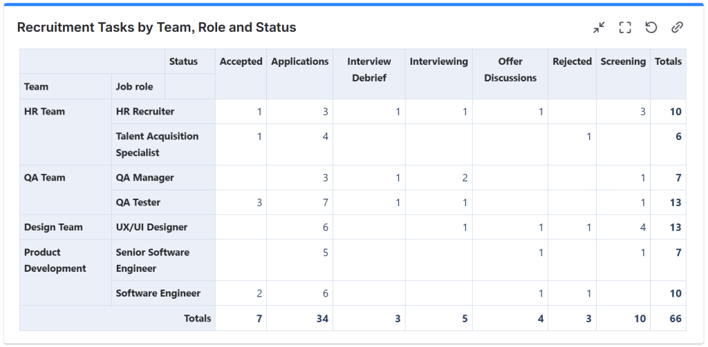 You can display many different things with a pivot table, depending on what you need, but here are just a few ways development teams use this gadget to gain visibility and clarity across projects: